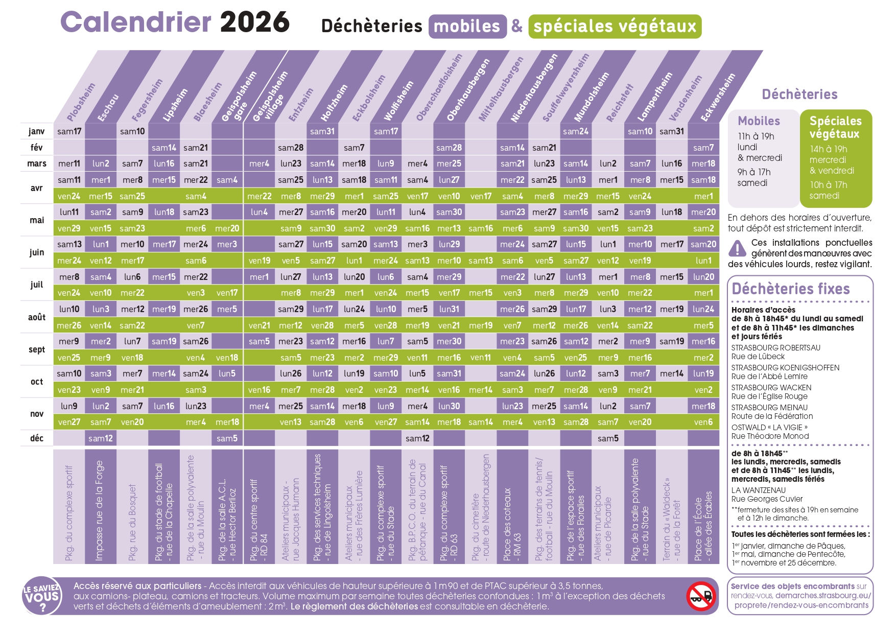 CALENDRIER DES DÉCHÈTERIES 2026